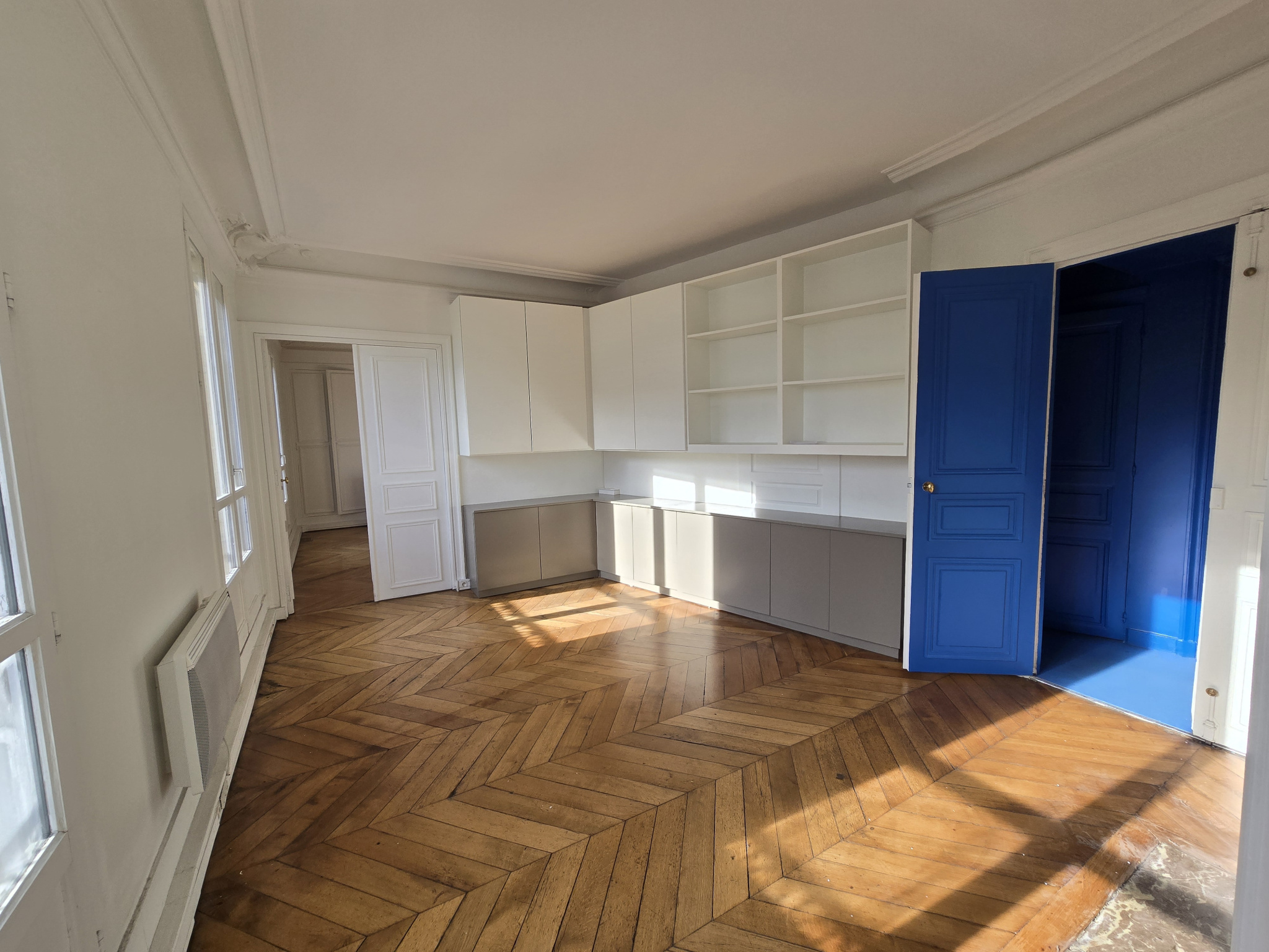 En plein quartier des affaires, dans un bel immeuble de standing en pierre de taille, 131 m² de bureaux avec 22 m² de balcon situés au 5ème étage avec ascenseur, composés d'un accueil, de 4 grands bureaux, une salle de réunion, d'un local technique, d'une cuisine, de blocs sanitaires. Calme, lumineux, câblage informatique, double-vitrage, visiophone. Bail 3/6/9 ans. Non soumis à la TVA ni à la CRL DIsponibilité : immédiate après Contact pour visites AXIMMO Paris 9
