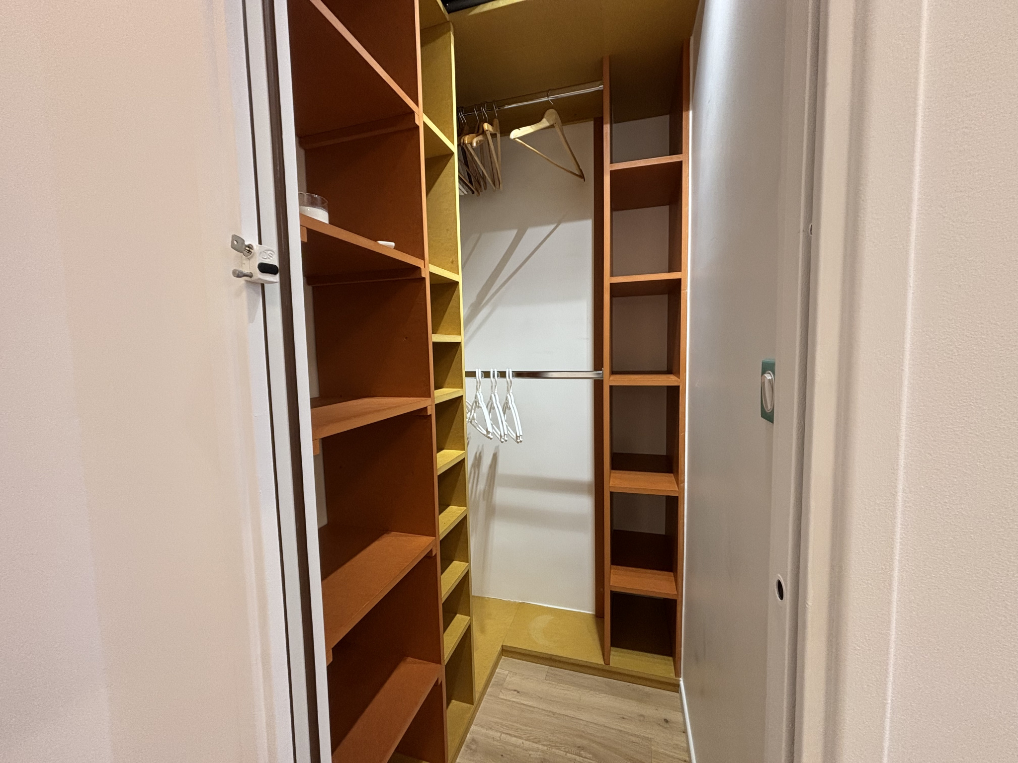 L'entrée donne sur une cuisine équipée et meublée, ouverte sur le séjour. Une porte coulissante permet d'accéder à une chambre aux belles proportions donnant sur une salle d'eau avec WC, d'une part, et sur un dressing, d'autre part. Aucune perte de place. Volets électriques à chaque fenêtre.