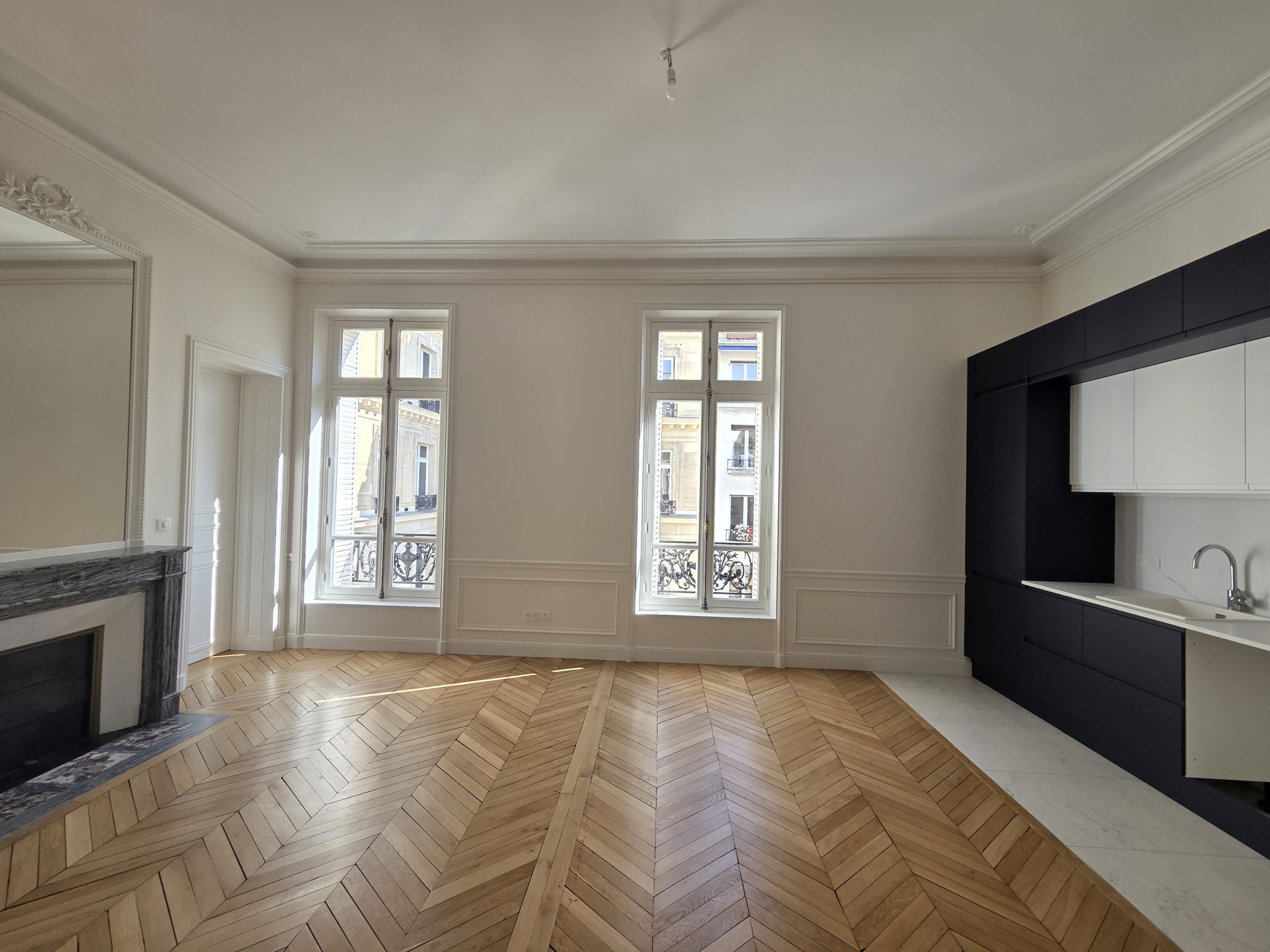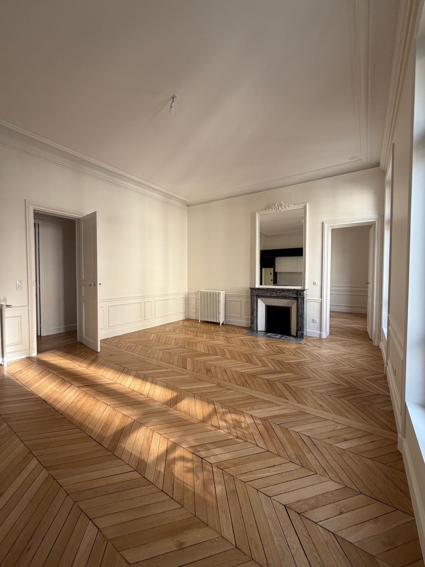 Situé au 3ème étage avec ascenseur d’un superbe immeuble sur cour, AXIMMO vous propose un spacieux et lumineux appartement de 5 pièces entièrement refait à neuf ! Charme de l'ancien préservé : parquet, moulures et cheminées. Le bien offre de beaux volumes et un plan sans perte d'espace. Il se compose d’une entrée, d’un salon, d’un séjour avec cuisine ouverte aménagée, de 3 chambres à coucher avec de rangements intégrés, couloir avec placards encastrés, d’un WC séparé ainsi que d’une salle de bains avec WC et une salle d'eau avec espace buanderie et WC. L’appartement offre une belle luminosité naturelle grâce à ses nombreuses fenêtres. L’immeuble dispose d’une gardienne et digicodes. Surface habitable : 132.85 m² - Surface au sol : 134.93 m². Zone soumise à l'encadrement des loyers. Loyer de référence majoré : 4330.91 euros - Loyer de référence : 3613.52 euros. (Si bail code civil, conditions exclues des champs d'application de la loi du 6 juillet 1989) Disponible immédiatement après accord. Contactez AXIMMO Paris 9